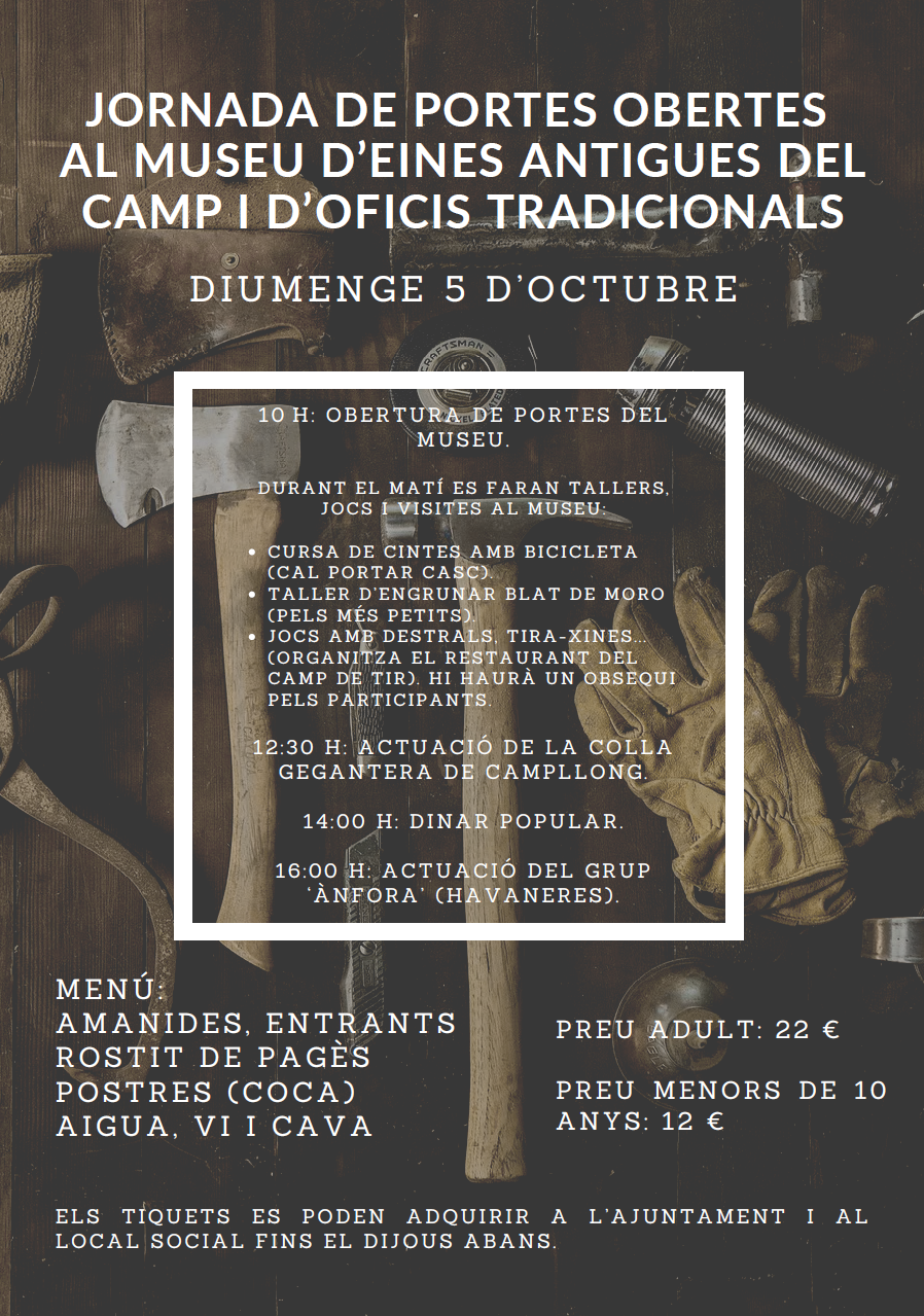 El proper diumenge dia 5 d’octubre a partir de les 10h obertura de portes del museu. Durant tot el mati es faran tallers, jocs i molt més…